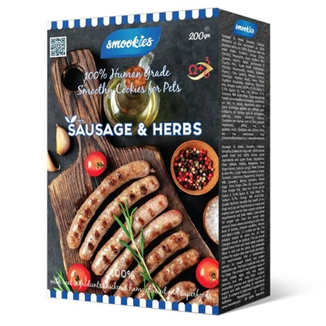 Smookies Premium sú ručne pečené sušienky s príchuťou klobásy. Za neodolateľnou chuťou a príjemnou vôňou sa skrývajú len starostlivo vybrané ingrediencie v kvalite určenej pre ľudí. Sušienky neobsahujú žiadne náhradné látky, žiadne skryté prísady ani vedľajšie produkty.