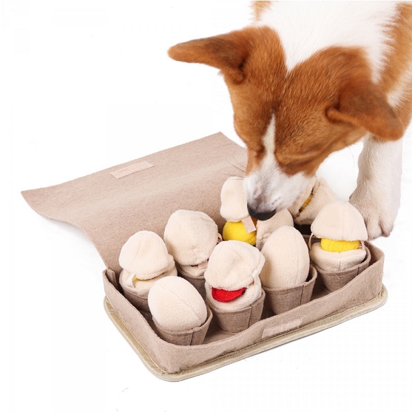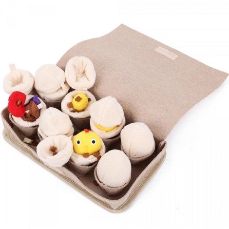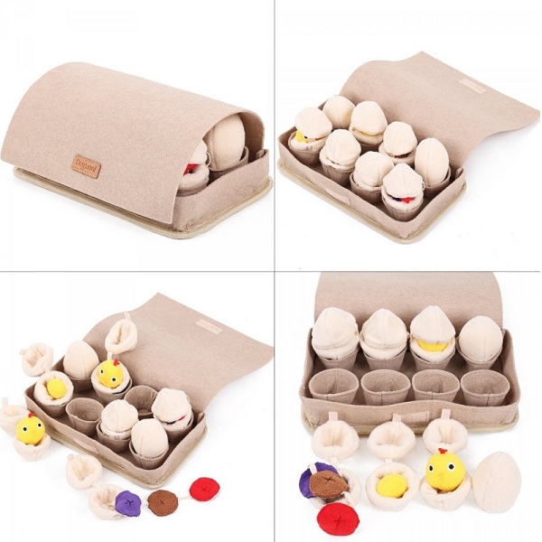 Zábavná hračka na ňuchanie, ktorá prekoná hodinový beh! Uzatvárateľná škatuľka obsahuje 8 vajíčok, do ktorých môžete ukryť pamlsky. Niektoré vajíčka majú vo vnútri pískatko, iné majú kuriatko, žĺtok alebo šnúrku. Uvidíte, že vášho psa bude baviť loviť za odmenu.