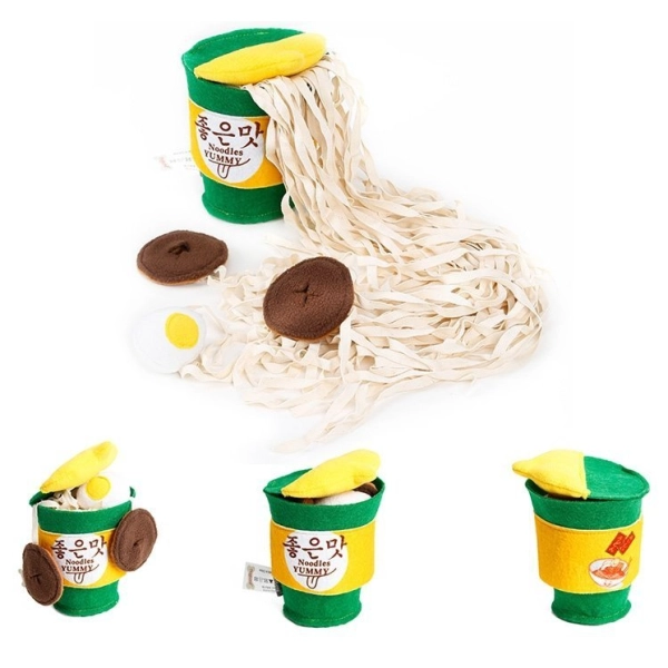 Hračka Noodles na čuchanie maškŕt zabaví vášho psa na dlhý čas. Je to interaktívna hračka v tvare uzatvárateľného pohára, z ktorého sa dajú skutočne vytiahnuť rezancové stuhy. Práve medzi ne môžete schovať pochúťky alebo granule, ktoré bude pes chcieť dostať von. Pre psy, ktoré obľubujú skutočnú výzvu, môžete pochúťky ukryť až do 3 skrýš (kúsky mäsa a vajíčko), z ktorých bude ťažšie pochúťku vytiahnuť. Možno prať v práčke.