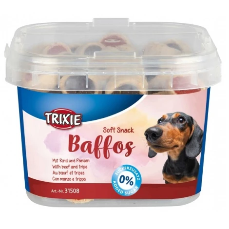 Soft Snack Baffos - mini kolieska s hovädzie príchuťou a s držkami. Táto maškrta je ideálne odmenou pre malé plemená. Baffos sú výživné, ľahko stráviteľné a chutné. Poskytujú psovi energiu a zvyšujú jeho vytrvalosť.
