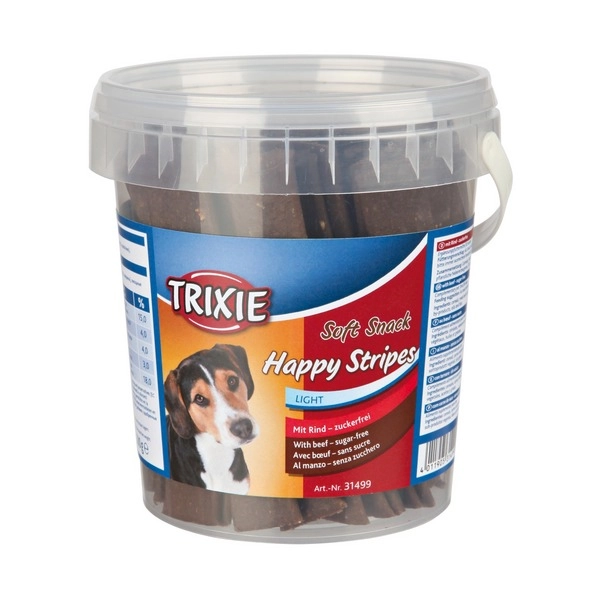 odstrániťPochúťka Soft Snack Happy Stripes vo forme pásikov s hovädzou príchuťou. Maškrta má znížený obsah tuku a je bez pridaných cukrov. Pásiky sú vo vedierku, ktorý opäť uzavriete a uchováte tak čerstvosť a chutnosť maškŕt.