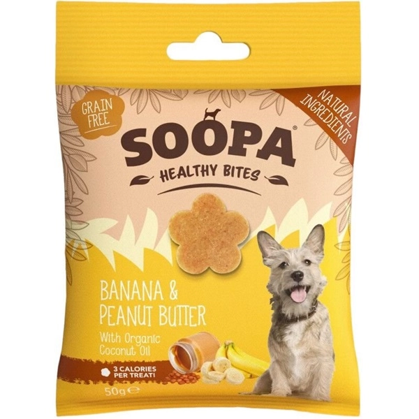 Všetky suroviny v maškrtách Soopa pochádzajú z rovnakých zdrojov ako suroviny na ľudskú spotrebu. Banány sú pre väčšinu chlpáčov úplne neodolateľnou lahôdkou. Obsahujú vysoké množstvo vlákniny, celý rad vitamínov, draslík a horčík, posilňujú imunitu a pomáhajú udržať zdravý krvný tlak. Kokosový olej pôsobí protizápalovo, detoxikačne a pomáha udržiavať zdravú srsť, kožu a pazúriky. Arašidové maslo svojou intenzívnou chuťou priláka nejeden psí ňufáčik. Je bohaté na zdravé tuky, bielkoviny a vitamíny B a E.