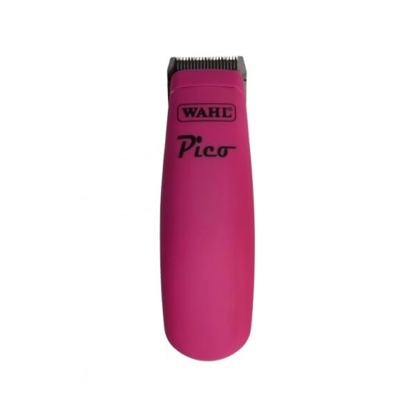 Batériový strihací strojček na kontúry Wahl Pico v ružovej farbe. Vďaka kompaktnej veľkosti je ideálny na zastrihávanie okolia hlavy, labiek a horšie dostupných miest, ideálne tiež k dokončovacím úpravám napr. na výstave. Ergonomický tvar a elegantný dizajn.
