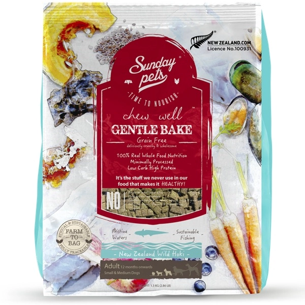 Hľadáte krmivo, ktoré si váš chlpáčik zamiluje na prvé chrumknutie? Vyskúšajte kompletné a vyvážené krmivo z Nového Zélandu pre dospelých psov malých a stredných plemien od 12 mesiacov veku. Sunday Pets Gentle Bake Hoki Fish Adult Small & Medium Breed je poctivé a šetrne pečené krmivo vyrobené z vysokokvalitných surovín - divokých novozélandských tresiek, hovädzích vnútorností, zeleniny a ovocia, ktoré sú prirodzene bohaté na živiny a chuť. Minimálne spracovanie dodáva krmivu jemnosť, chrumkavosť a množstvo živín v každom súste.