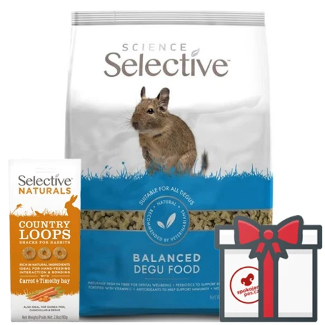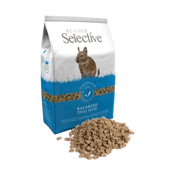 odstrániťSupreme Science Selective Degu je chutné, nutrične kompletné a vyvážené krmivo pre osmáky. Toto peletkové extrudované krmivo s identickými kúskami zabezpečuje, že si váš osmák nebude vyberať tak, ako to môže robiť u nehomogénnych krmív.