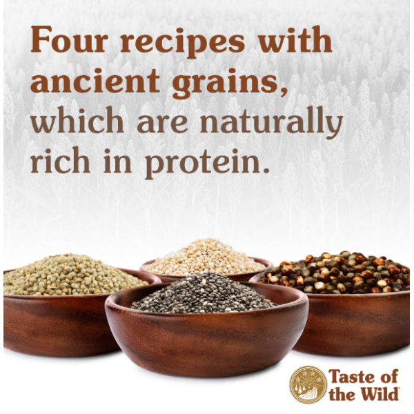 Kompletné krmivo pre psy všetkých vekových kategórií. Taste of the Wild Ancient Wetlands s pečenou prepelicou, pečenou kačicou a údeným moriakom prináša chutnú a vysoko výživnú receptúru so starými obilninami - proso, cirok, quinoa a chia semienka. Vysoký obsah bielkovín podporuje silné svaly, zatiaľ čo druhovo špecifické probiotiká, antioxidanty z pravého ovocia a omega mastné kyseliny podporujú zdravé trávenie, silnú imunitu a krásnu srsť.