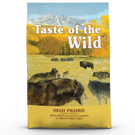 S Taste of the Wild High Prairie Canine si psík môže pochutnať na pečenom bizónovi a hromade ďalších druhov mäsa plného divokých bielkovín. Pribalené je srnčie, jahňacie, hovädzie, ale dokonca aj porcia morských rýb. Krásne vonia bylinkami a nechýba ani porcia ovocia a zeleniny. Zmes čučoriedok a malín spolu s paradajkami, hráškom a sladkými zemiakmi dodajú vitamíny, antioxidanty, minerály, vlákninu a prídel ďalších nenahraditeľných proteínov. High Prairie spĺňa chuťové požiadavky tých najnáročnejších psích gurmánov.