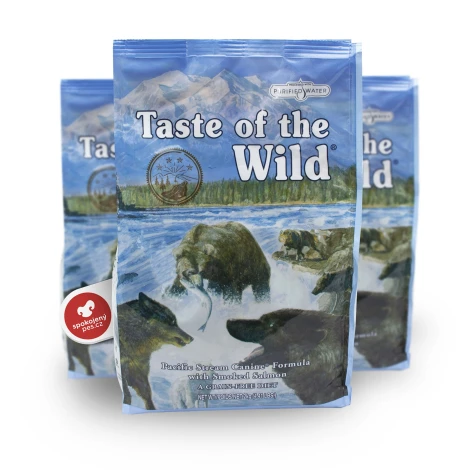 Krmivo Taste of the Wild Pacific Stream Canine je úplne bez obilnín. Superprémiové granule sú určené pre dospelých psov všetkých plemien.