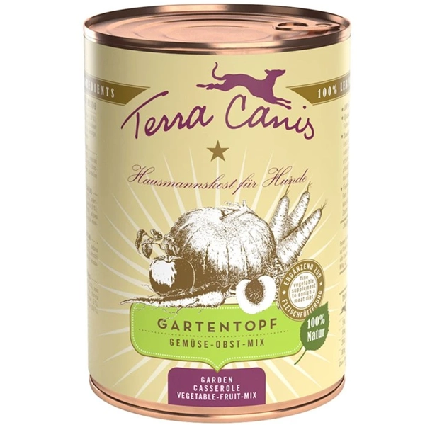 Garden Pot Terra Canis so zmesou ovocia a zeleniny je bezmäsitá bomba plná lahodných chutí, vôní a farieb. Dokonale sa kombinuje so surovými aj varenými jedlami, kde rozžiari každý pokrm ako čarovná príloha. Doplnkové krmivo pre psov bez obilnín so 100 % potravinárskymi (humánnymi) zložkami.