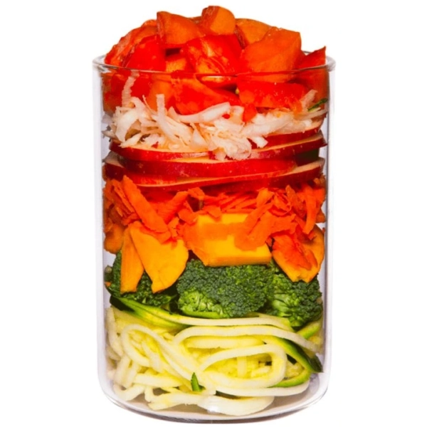 Mrkva 18 %, cuketa 18 %, zeler 18 %, tekvica 13 %, jablko 9 %, paštrnák* 9 %, brokolica 5 %, papája 5 %, marhuľa 5 %, pivovarské kvasnice*, púpava* 0,3 %, šalvia* 0,3 %, minerálna hlina*, morské riasy*.