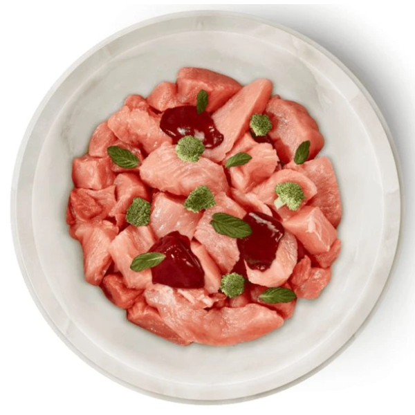 Králičie mäso 53 %, morčacia pečeň 21 %, morčacia svalovina 8 %, morčacia koža 8 %, brokolica 4 %, paradajkový prášok, repkový olej, mäta mačacia*, minerálne látky.