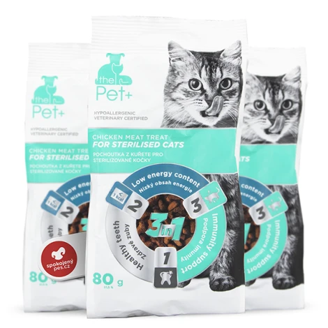 The Pet + maškrty sú drobné, vhodné pre mačky každého veku i plemena. Zloženie je prispôsobené kastrátům, preto nenapomáhajú nadváhe a naopak starajú o zuby aj imunitu.
