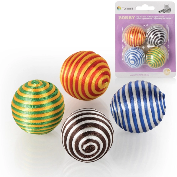 Hrkajúci set loptičiek pre mačky Tommi Zorba v krásnych dúhových farbách. S touto atraktívnou hračkou si vaša mačka vyhrá dlhé hodiny. Balenie obsahuje 4 ks loptičiek.