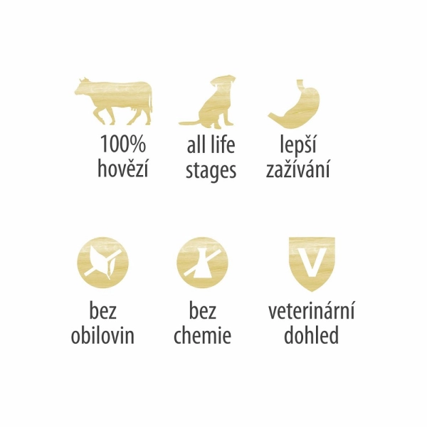 - 100 % podiel živočíšne bielkoviny - obsahuje celé šťavnaté hovädzie steaky