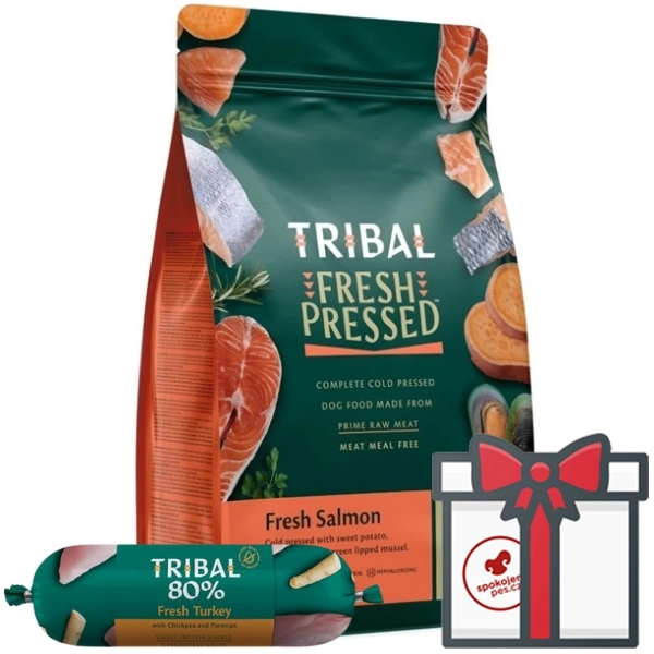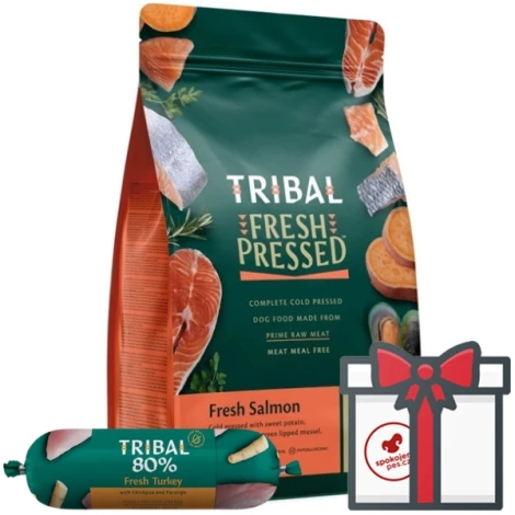 Tribal Fresh Pressed Adult Salmon kompletné krmivo pre dospelé psy všetkých plemien. Radi skúšate niečo nové a chcete svojmu psovi dopriať krmivo, ktoré si zakladá na najkvalitnejších surovinách a šetrnom spôsobe výroby s maximálnym zachovaním živín a skvelou prirodzenou chuťou? Vyskúšajte za studena lisované granule od írskej značky Tribal.