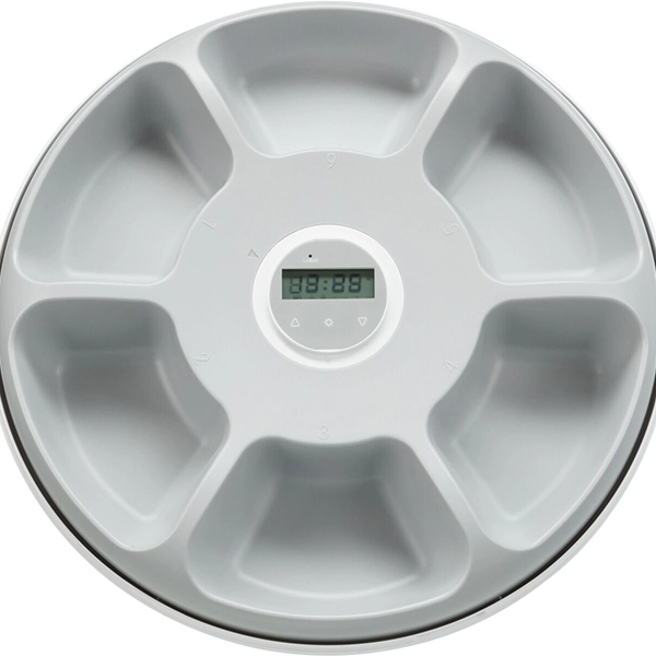 Automatické krmítko Trixie TX5+1 zabezpečí, že váš pes alebo mačka budú nakŕmení, aj keď nie ste doma. Dávkovač má celkom 6 misiek s objemom 180 ml, ktoré sa postupne otvárajú a kŕmia vášho domáceho miláčika presne podľa nastaveného času. Môžete nastaviť až 5 kŕmení denne. Dávkovač má ochranu proti stlačeniu labky a automatický bezpečnostný spínač. Je vhodný na suché aj mokré krmivo a jednotlivé misky možno bezpečne umývať v umývačke riadu.