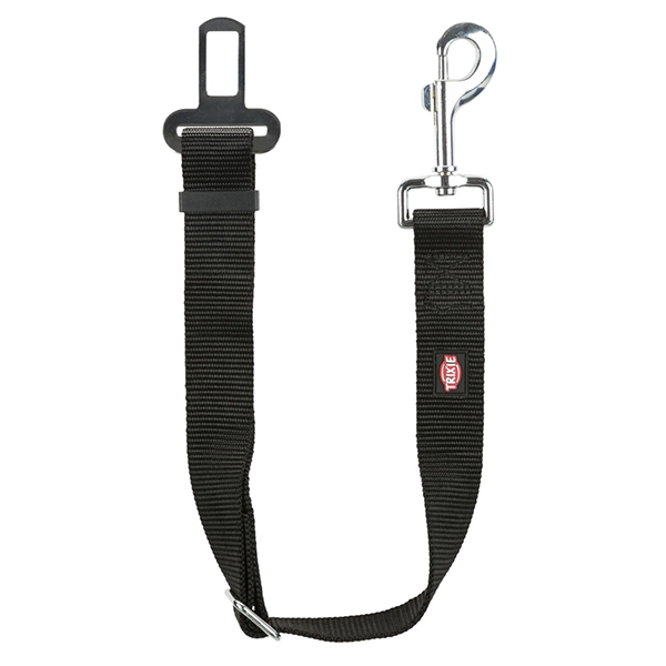 Trixie bezpečnostný pás pre psa s karabínou na pripnutie k postroju. Dĺžka je nastaviteľná v rozmedzí 45-70 cm, šírka popruhu je 30 mm. Spojka je navrhnutá pre väčšinu automobilov.