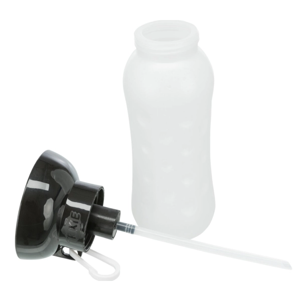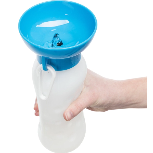 Keď konečne dorazíte na vytúžené miesto odpočinku, chcete dať svojmu psovi napiť čerstvej vody a hľa, jeden z vás nechal misku doma. Cestovná fľaša Trixie pre psa s integrovanou miskou tieto starosti odbúra. Stačí stlačiť fľašu, aby sa naplnila vrchná miska, a máte hotovo.
