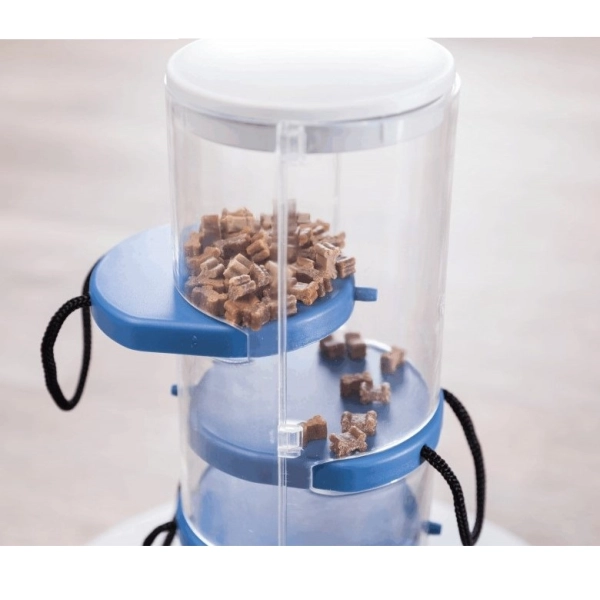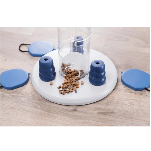 Inteligentná hra pre psov. V plastovej veži sú integrované tri poschodia na ktoré sa dajú maškrty. Pes musí poschodia vytiahnuť a maškrty mu potom prepadnú dole, kde si ich zje.