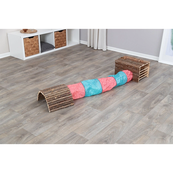Pestrý bavlnený tunel Trixie pre hlodavce. Poskytne súkromie na odpočinok a poslúži aj ako preliezačka pri hre. Tkanina je ľahká, prateľná a nezachytávajú sa do nej pazúriky.