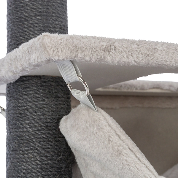 Škrabadlo Trixie Juliano ponúka celý rad funkcií, ktoré mačky potrebujú na uspokojenie svojich prirodzených inštinktov. Obsahuje sisalové stĺpiky, úkryt na bezpečné schovávanie, preliezačku, hojdaciu sieť a pohodlné miesto na odpočinok. Povrch škrabadla je pokrytý mäkkým plyšom, ktorý zabezpečuje maximálne pohodlie, zatiaľ čo sisal na stĺpikoch a na boku škrabadla slúži na škrabanie pazúrikmi. Hojdacia sieť je odnímateľná a možno ju ručne prať.