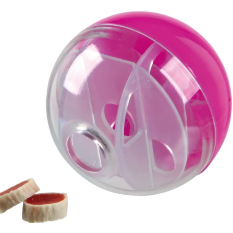 Zábavný, z polovice priehľadný loptičku Trixie na maškrty. Vnútorné labyrint oneskorí vypadnutiu maškrty, mačka sa tak musí oveľa viac snažiť. Aktívna hračka, ktorá je ideálna predovšetkým pre mačky žijúce v byte.