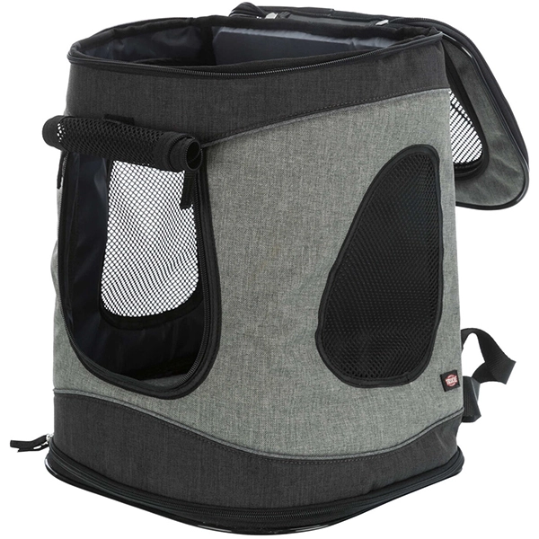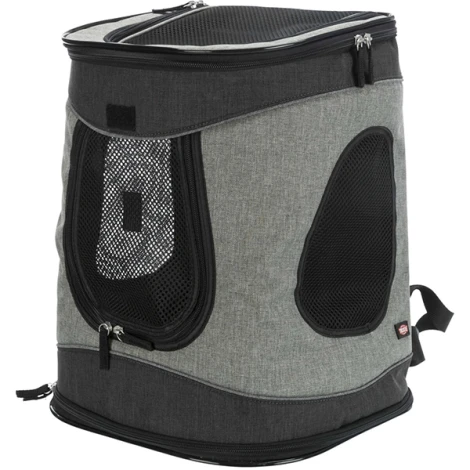 Batoh na nosenie psa od TRIXIE Timon. Z pevného, odolného nylonu. Veľmi vhodný na dlhé pešie trasy, ktoré malý pes nevydrží či pre prenášanie na nebezpečných miestach, kam sa pes bojí. Anatomicky tvarovaný, polstrovaná zadná časť a ramenné popruhy. Priedušný pre psa.S pásik v oblasti pásu aj hrudníka pre optimálne rozloženie záťaže a istejšie upevnenie.Pevná konštrukcia pre komfort a bezpečie psa.Otváranie z hornej i prednej časti. Reflexné pásky. Všité sieťky pre dobrú cirkuláciu vzduchu. Vrátane krátkeho vodítka vnútri pre pripnutie psíka.Polstrovaná podlážka s odnímateľným poťahom. Poťah možno prať v ruke do 30 ° C.
