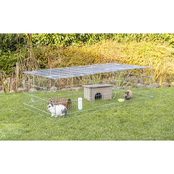 Ohrádka pre malé zvieratá od značky Trixie poskytne bezpečný vonkajší úkryt morčatám aj králikom. Vďaka pozinkovaniu je odolná proti nepriazni počasia aj proti ohryzávaniu. Ohrádka je vybavená vrchnými dvierkami a jednými bočnými dverami, vrátane stanových kolíkov.