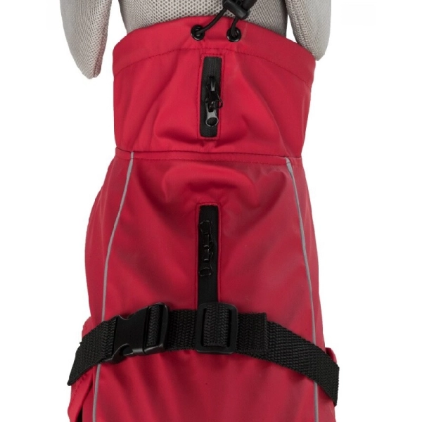 Praktická podšitá pláštenka Trixie Vimy. Vďaka vodoodolnému materiálu váš psík zostane aj za nepriaznivého počasia v teple a suchu. V daždi a hmle bude chlpáč dobre viditeľný vďaka výraznej farbe oblečenia a reflexným prúžkom. Na krku a chrbte sú umiestnené dva vodeodolné zipsy pre pripnutie vodítka za obojok alebo za postroj. V zadnej časti sú umiestnené nastaviteľné pútka pre zadné nohy.