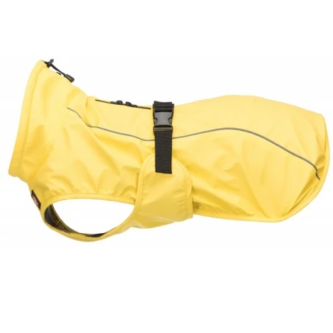 Praktická podšitá pláštenka Trixie Vimy. Vďaka vodoodolnému materiálu váš psík zostane aj za nepriaznivého počasia v teple a suchu. V daždi a hmle bude chlpáč dobre viditeľný vďaka výraznej farbe oblečenia a reflexným prúžkom. Na krku a chrbte sú umiestnené dva vodeodolné zipsy pre pripnutie vodítka za obojok alebo za postroj. V zadnej časti sú umiestnené nastaviteľné pútka pre zadné nohy.