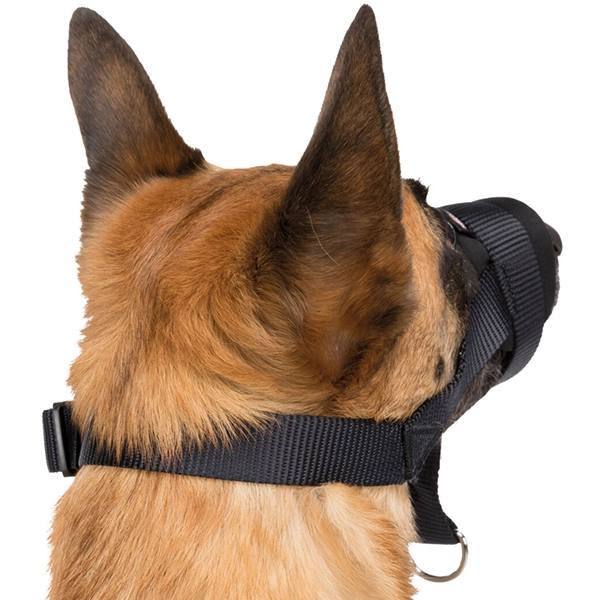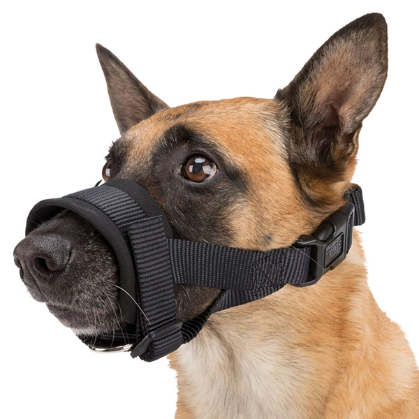 Trixie podložený nylónový náhubok patrí do skupiny fixačných náhubkov. Vďaka mäkkému polstrovaniu psa neškrtí a nastaviteľný popruh okolo ňufáka je možné prispôsobiť psovi. Náhubok je možné upraviť aj pomocou remienka okolo krku, zapínanie je na plastovú sponu.