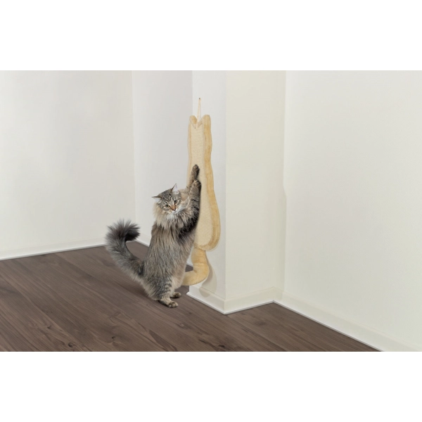 Nástenné škrabadlo v tvare mačky od značky Trixie slúžiace na obrusovanie pazúrikov vašej mačičky. Škrabadlo jednoducho zavesíte na stenu, nezaberie tak toľko miesta, čo väčšie škrabadlá. Vhodné aj pre mačky, ktoré ničia steny. Obsahuje catnip pre hravú náladu a tiež rolničku, vďaka ktorej je škrabadlo ešte zaujímavejšie. Vaša mačka si ho zamiluje!