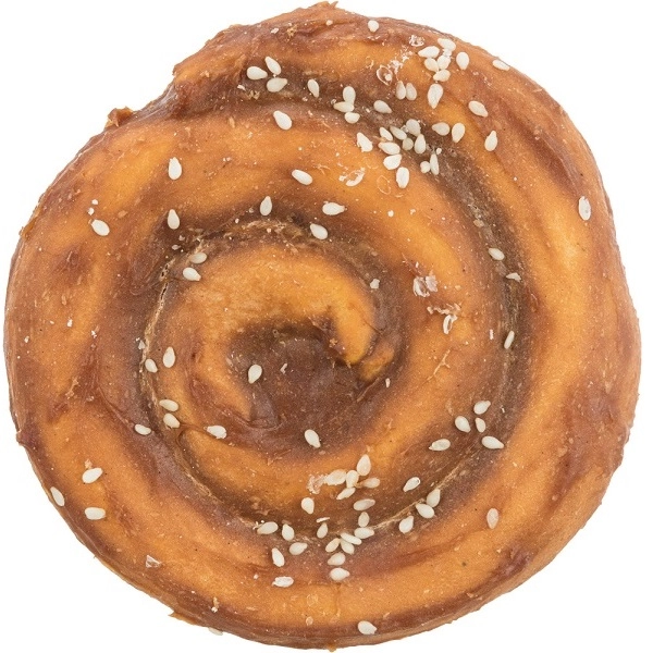 Chutný maškrta pre psov Trixie. Žuvacie šnek obsahuje byvolie kožu a kačacie mäso a je úplne bez obsahu cukru a lepku. Tento vtipný maškrta v tvare koláča sa sezamom si váš psík zamiluje!