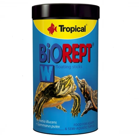 Kompletné krmivo Tropical Biorept W na každodenné kŕmenie vodných a bahenných korytnačiek. Vhodne zvolená kombinácia vitamínov a mikročastíc zabezpečuje správny vývoj kostí a panciera korytnačiek a chráni pred deformáciami a inými vážnymi zdravotnými problémami. Tyčinky sú veľmi chutné a zvieratá ich dobre prijímajú.