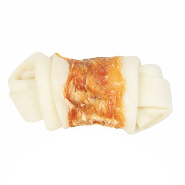 Pochúťka DENTAfun uzol zviazaný kuracím mäsom zaistí svieži dych a zdravé zuby vášho psa. Podávaním uspokojíte prirodzenú túžbu psa po žuvaní. Uzly sú vyrobené z celých a silných koží, aby sa zabránilo ich roztrieštenia počas žuvania.