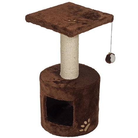 Škrabadlo Vadigran Bongo ponúkne vašej mačke všetko, čo potrebuje pre svoju pohodu. Útulná búdka poskytne pokojné a bezpečné miesto na odpočinok, zatiaľ čo praktické odpočívadlo umožní vášmu chlpatému priateľovi pozorovať okolie. Robustný sisalový stĺpik je ideálny na brúsenie pazúrikov a chráni váš nábytok pred poškodením. Škrabadlo je naviac vybavené hračkou na lanku so zvončekom, ktorá zaručí kopu zábavy.