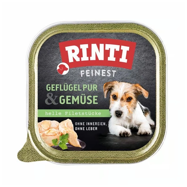Jemné kompletné krmivo vo vaničke Rinti Feinest pre malé plemená psov. Obsahuje jemné paté s kúskami hydinového mäsa so zeleninou. Ideálne krmivo pre vyberavé psíkov a psíkov s citlivým zažívaním.