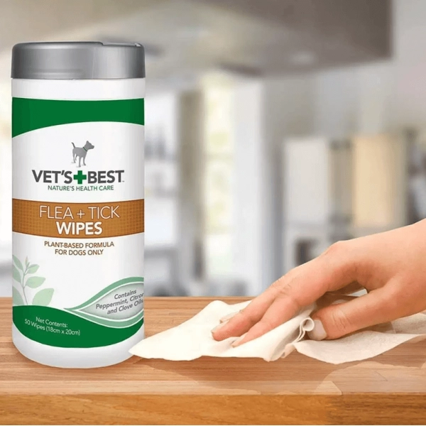 Extra jemné a vlhké obrúsky Vet's Best proti kliešťom a blchám obsahujú najsilnejšie prírodné rastlinné výťažky, ktoré pri kontakte zabíjajú blchy, blšie vajíčka a kliešte a odpudzujú komáre. Obrúsky čistia a dezodorujú srsť, sú bezpečné a ľahko sa aplikujú aj okolo uší a očí.