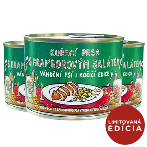 Tento rok sme pre vás konzervu zabalili do jedinečného vianočného designu Spokojného psa!