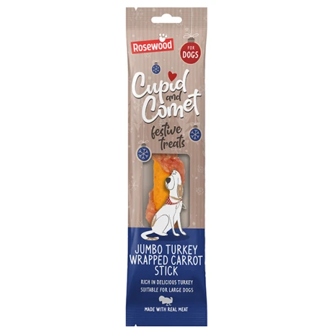 Vianočná chuť na sladké praje pripraveným. Obrovská pochúťka s morčacím a mrkvou je ideálnym vianočným darčekom pre všetkých psov, ktorí radi prosíkajú pri sviatočnom stole. Pochúťka Rosewood Turkey Carrot Stic Jumbo oplýva chutným mäsom a skutočne úžasnou schopnosťou potešiť každý mlsný jazýček. Ideálne pre psy väčších plemien.