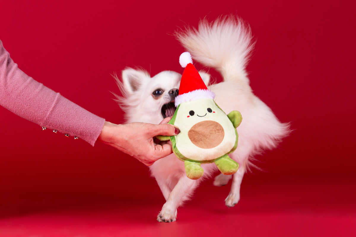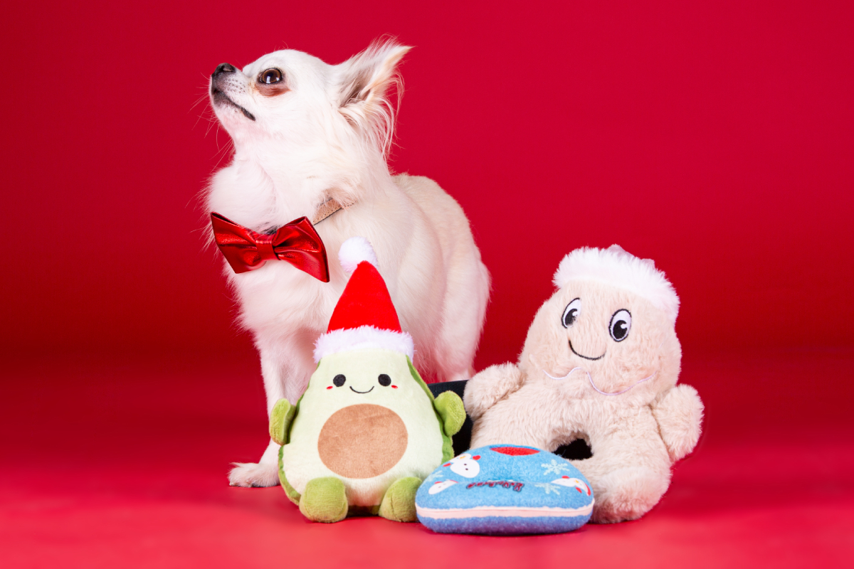 Do našej ponuky nám pristálo množstvo vianočných hračiek pre psíkov. Bolo ťažké vybrať, ktoré najviac zaujmú toho môjho chlpáča (ale myslím, že by obstáli takmer všetky, hračky miluje). Moja voľba nakoniec padla na plyšáky - vianočné cookie Trixie, avokádo Nobby a na donut Kong. No a aby bol Tedíček fešák pri stromčeku, musela som mu vyskúšať aj parádného motýlika Trixie.