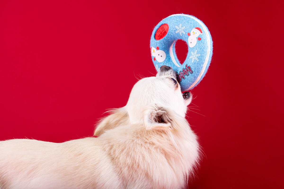 Donut na Vianoce? Jasne! Aport Kong zabalený do vianočného motívu s tvarom pripomínajúcim šišku. Akonáhle poletí, žiadny pes nezaváha! Táto hračka z neabrazívneho materiálu šetrí zuby psíka a obsahuje pískatko pre ešte väčšie nadšenie z hrania. Uvidíte, ako si ju váš hafan hrdo ponesie. A vás čaká jediné, urobiť si nejakých pár minútok na aportovanie.