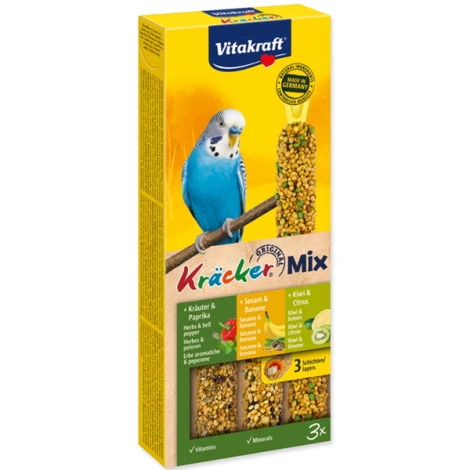 odstrániťLahodné ovocné tyčinky pre andulky s banánmi, kivi a figy. Obsahujú ovocie, obilniny, minerálne látky a med. Balenie obsahuje 3 tyčky.