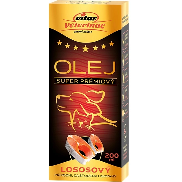 Vitar Veterinae lososový olej je prírodným zdrojom esenciálnych mastných kyselín, ktoré majú významné účinky pre celý organizmus, najmä na riadenie a súhru všetkých životných procesov. Priaznivo ovplyvňujú kardiovaskulárny, svalový, nervový, respiračný, imunitný aj tráviaci systém. Podávanie oleja počas krátkej doby zlepšuje stav kože a srsti. Pri pravidelnom používaní je znížené riziko kardiovaskulárnych ochorení a hladina cholesterolu v krvi. Lososový olej má veľmi pozitívny vplyv na fungovanie imunitného systému. Odporúča sa tiež pri problémoch s reprodukciou. Olej s lákavou chuťou skvele spestrí jedálniček vášho maznáčika.