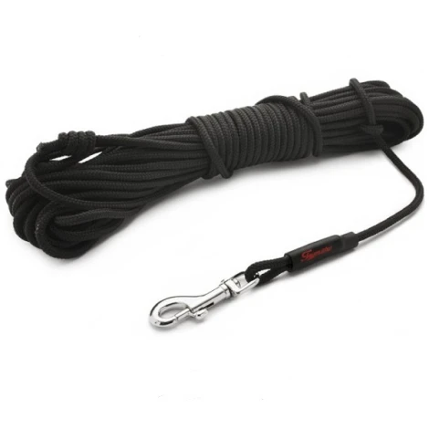 Stopovacie vodítko Tamer Mini využijete ako pri nácviku privolania, tak aj pri bežných pravidelných prechádzkach. Verzia mini je ideálny pre malé, stredné, ale predovšetkým tie najmenšie plemená. Pre výrobu vodítka je použitý materiál a technológie využívané v horolezectve, každý lisovaný spoj a uzol je teda maximálne odolný k mechanickým poškodeniam. Zredukovaný na minimum je počet prvkov, ktoré sa môžu mechanicky poškodiť. Stopovacie vodítko je zakončené uzlom bez úchytu.