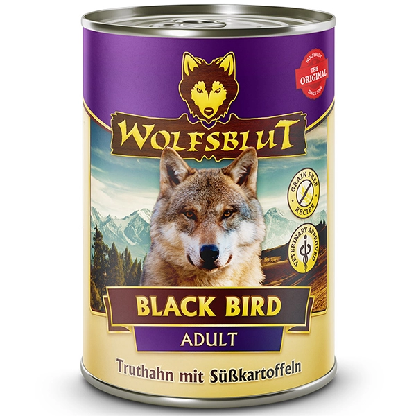 Konzerva Wolfsblut Black Bird poteší každého psieho labužníka, ktorý túži po prirodzenej a pestrej strave. Výživné a ľahko stráviteľné morčacie mäso, bohaté na bielkoviny, vitamíny a minerály, dopĺňajú superpotraviny, ako sú sladké zemiaky, aróniu, ostružiny, topinambury alebo púpavu.