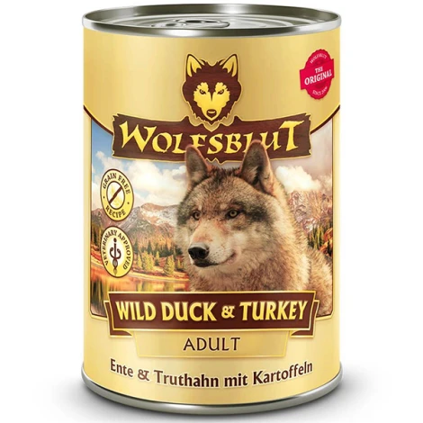 Wolfsblut Wild Duck & Turkey je vyvážené vlhké krmivo pre dospelé psy inšpirované prirodzenou stravou vlkov. Kombinuje vysokokvalitné morčacie a kačacie mäso s výživnými superpotravinami a ponúka chutné a druhovo vhodné krmivo pre citlivé psy.