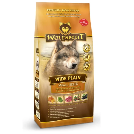 Wolfsblut Wide Plain Small Breed je krmivo inšpirované prirodzenou stravou vlkov pre malé psy. Čerstvé konské mäso, ktoré je hlavnou zložkou receptúry, je ľahko stráviteľné, má nízky obsah tuku a zároveň poskytuje dvakrát viac železa a takmer trikrát viac vápnika ako hovädzie mäso. Ideálna voľba aj pre alergikov!