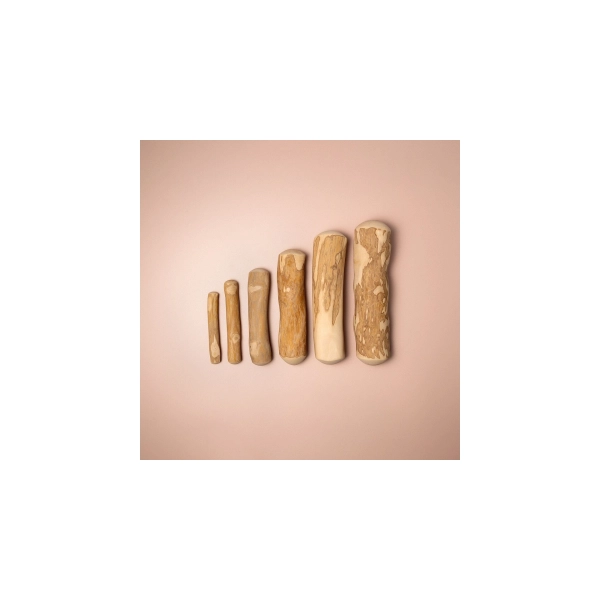 Predstavujeme hračku na žuvanie pre psov Wooffee - vyrobenú z pravého kávového dreva, ktoré má za sebou dlhý život medzi voňavými kávovými zrnami v pohorí Tây Nguyên vo Vietname. Až 20 a viac rokov tieto stromy boli na plantážach, kým prestali plodiť. Potom dostali druhý život, tentoraz pre radosť a zdravie štvornohých chpláčov. Každý kus je ručne opracovaný zručnými remeselníkmi a starostlivo skontrolovaný pre maximálnu čerstvosť a kvalitu. Čisto prírodné, bez zbytočnej chémie.