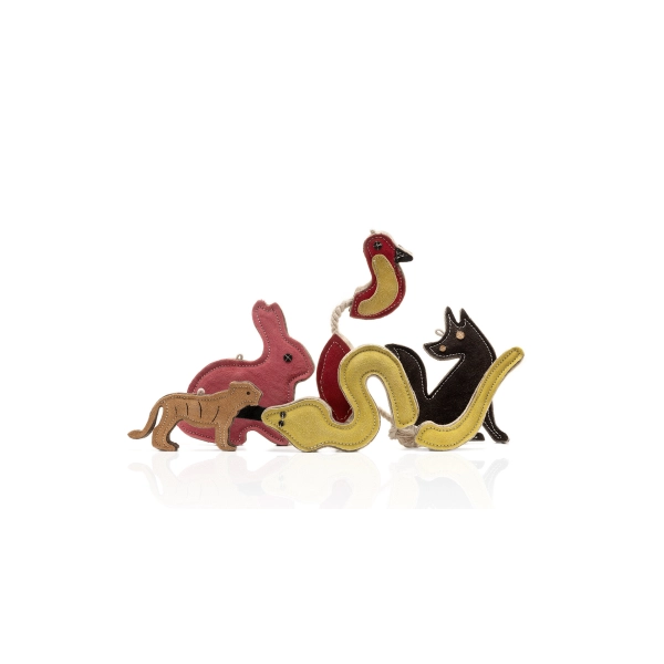Kožená hračka Wooffee Dinosaurus je starostlivo prešitá pevnou niťou, ktorá zaručuje dlhú životnosť aj pri intenzívnom ťahaní a hryzení. Je šetrná k zubom a ďasnám, neodiera ich a jej prírodná kožená vôňa prebúdza lovecké inštinkty psa - motivuje k hre, žuvaniu a aportovaniu.